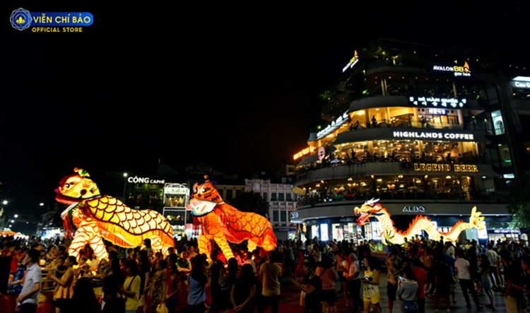 Địa điểm đi chơi Trung thu ở Hà Nội tiếp theo mà bạn có thể tham khảo đó là phố đi bộ Hồ Gươm. Mỗi dịp Rằm tháng 8 đến, nơi này sẽ trở nên náo nhiệt, đông vui với không gian ngập tràn màu sắc của đèn ông sao, đèn lồng, mặt nạ, lân sư và rất nhiều các hoạt động giải trí được tổ chức như chương trình biểu diễn nghệ thuật, khu trò chơi dân gian, diễu hành,…