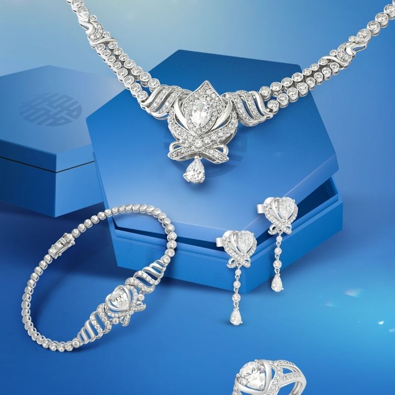 Một tổng thể hài hòa luôn khiến cô dâu tỏa sáng. Xu hướng năm 2026 nhấn mạnh việc phối hợp vòng cổ và bông tai đồng bộ để tạo điểm nhấn hoàn hảo cho khuôn mặt và cổ. Ví dụ, Viễn Chí Bảo giới thiệu bộ đôi vòng cổ và bông tai vàng trắng đính kim cương, vừa tinh tế vừa nổi bật, giúp cô dâu toát lên vẻ sang trọng và thanh lịch.