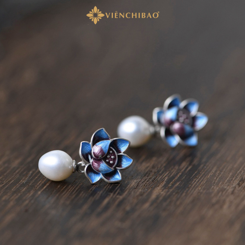 Bông Tai Bạc Nữ Hoa Sen Xanh – Bạc Thái S925 Viễn Chí Bảo