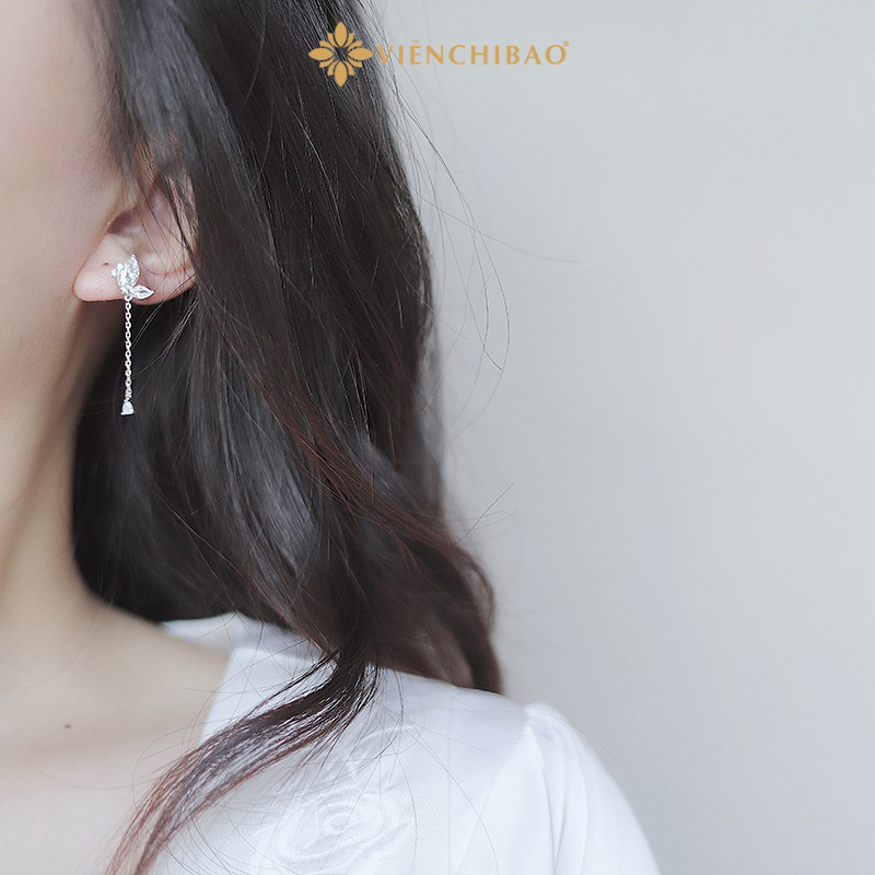Bông Tai Kẹp Vành Zích Zắc Đính Đá Dây Dài VIỄN CHÍ BẢO