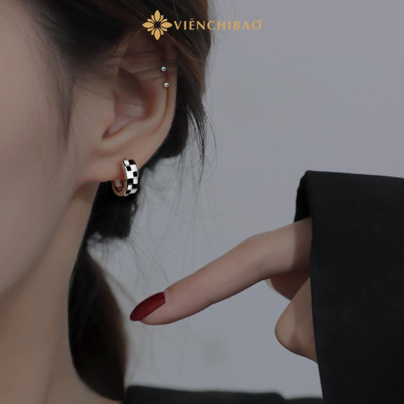 Bông Tai Bạc Nữ Caro Đen Trắng – Viễn Chí Bảo