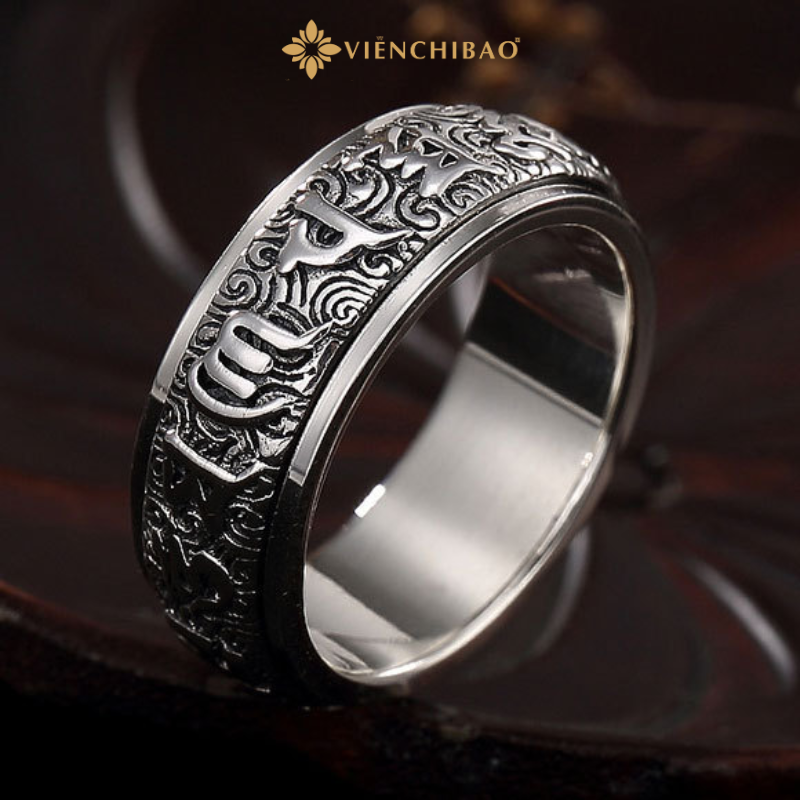 Nhẫn Tỳ Hưu Lục Tự Xoay – Viễn Chí Bảo – Bạc Thái S925