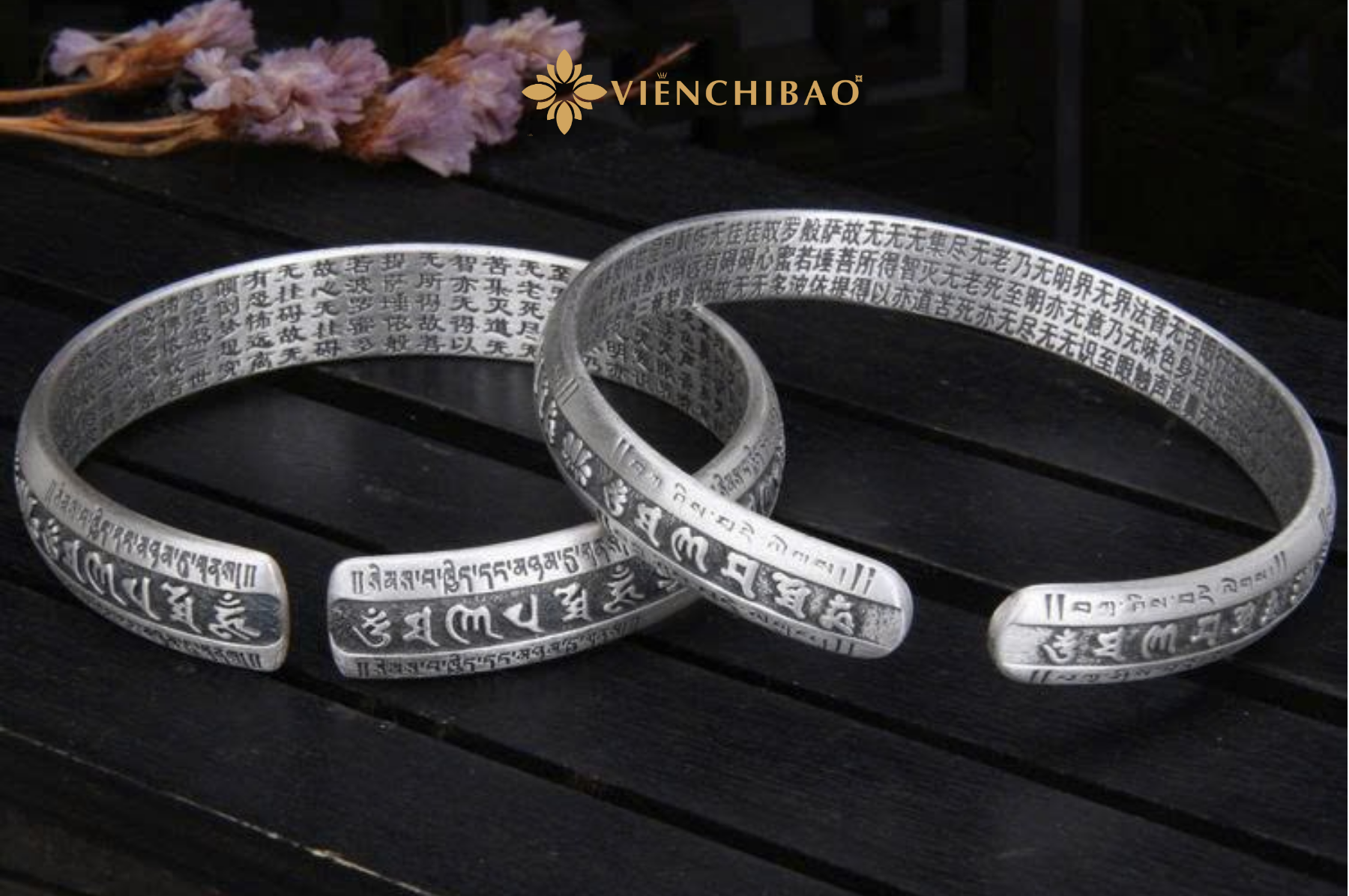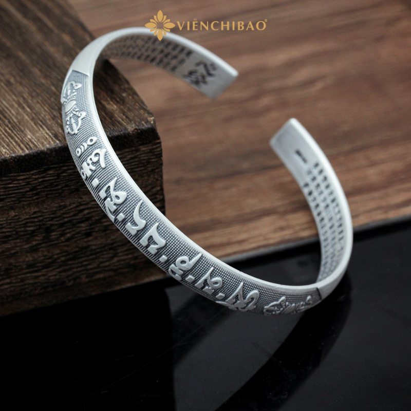 VÒNG TAY BẠC NAM LỤC TỰ ĐẠI MINH CHÂN NGÔN – BÁT NHÃ TÂM KINH – VIỄN CHÍ BẢO – L100428