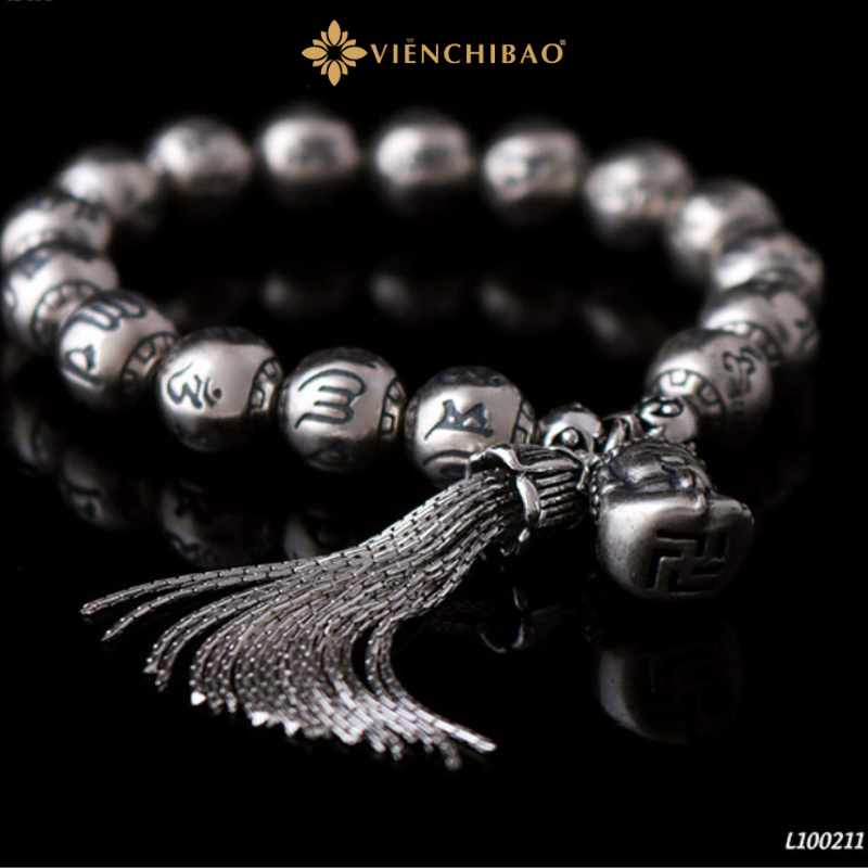 Vòng Tay Lục Tự Thần Chú Charm Tua Rua – 10mm Viễn Chí Bảo