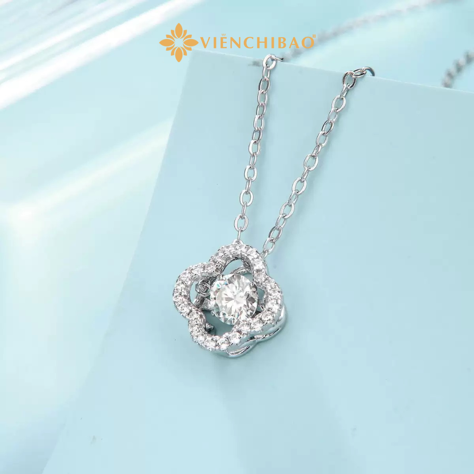 Dây chuyền cỏ 4 lá S925 đính đá zircon – Viễn Chí Bảo
