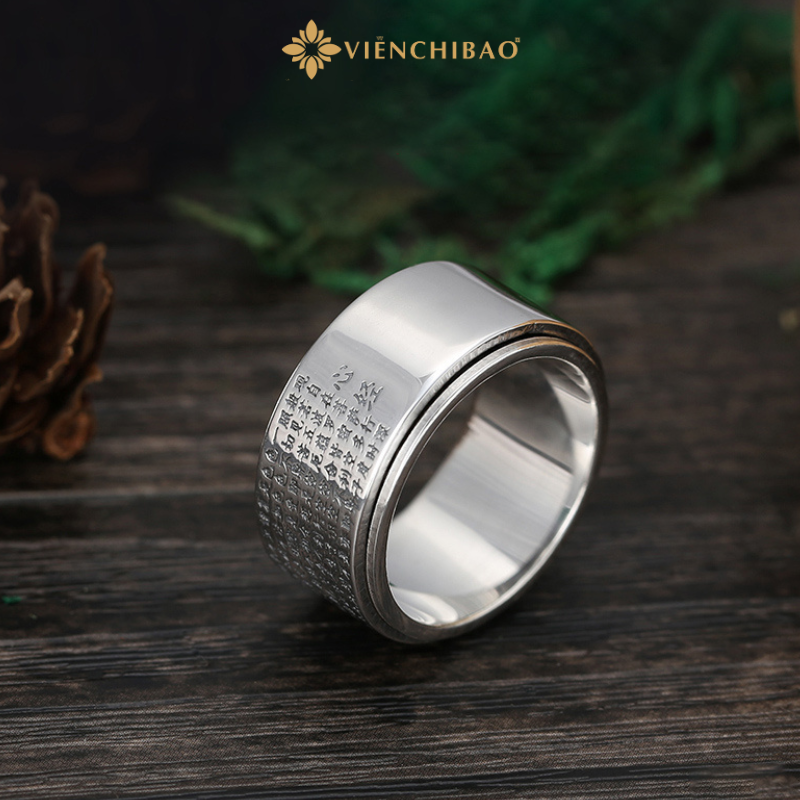 Nhẫn Bạc Nam Bát Nhã Tâm Kinh Bản Xoay – Viễn Chí Bảo