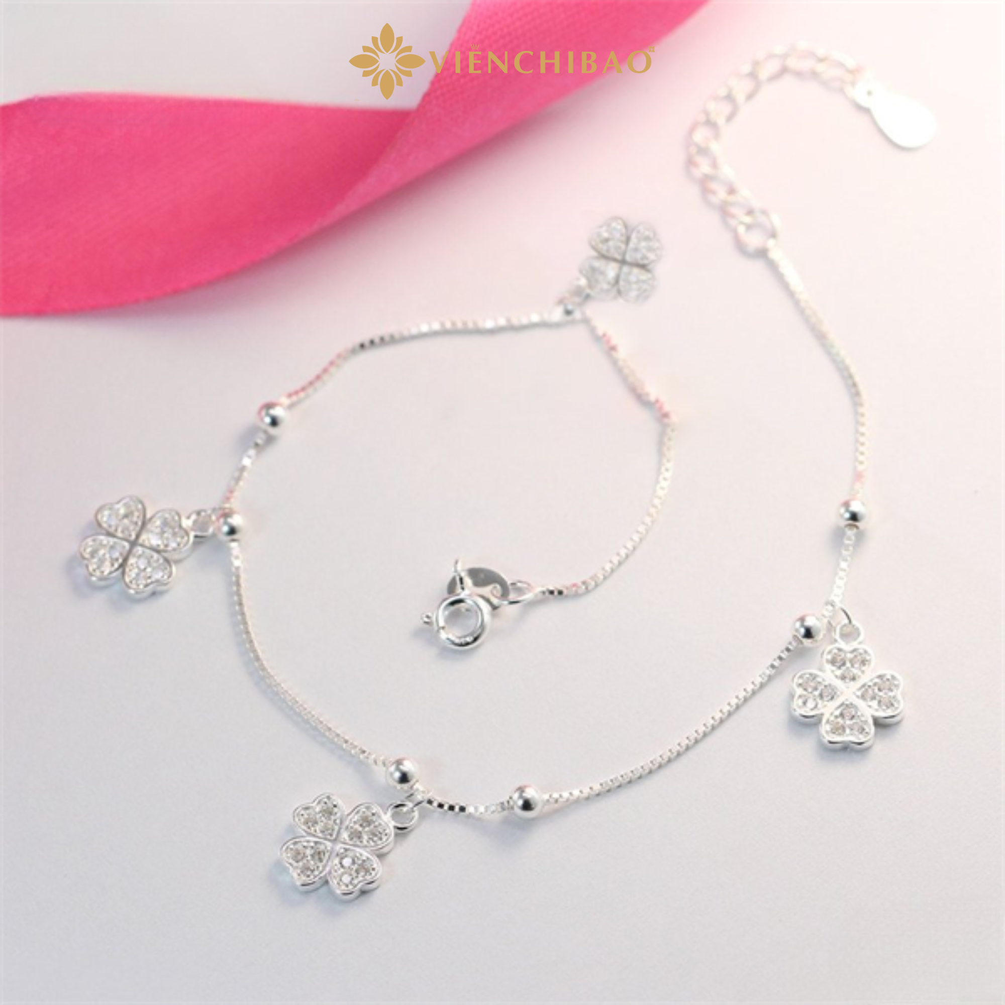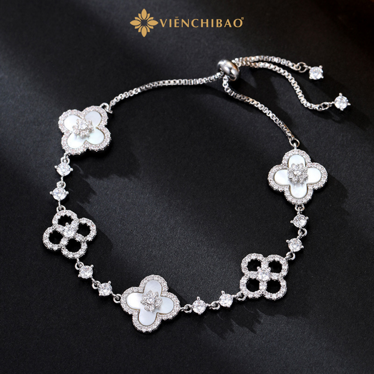 LẮC TAY CỎ 4 LÁ ĐÍNH ĐÁ – VIỄN CHÍ BẢO – L400192-B