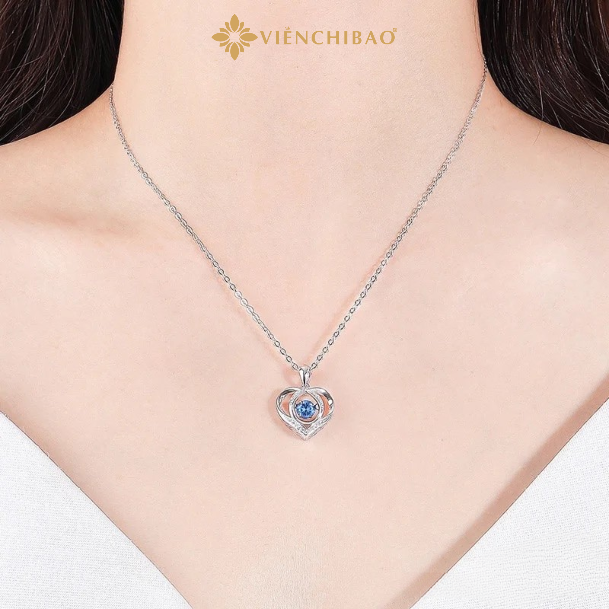 DÂY CHUYỀN BẠC NỮ TRÁI TIM ĐÍNH ĐÁ VIỄN CHÍ BẢO – D400782