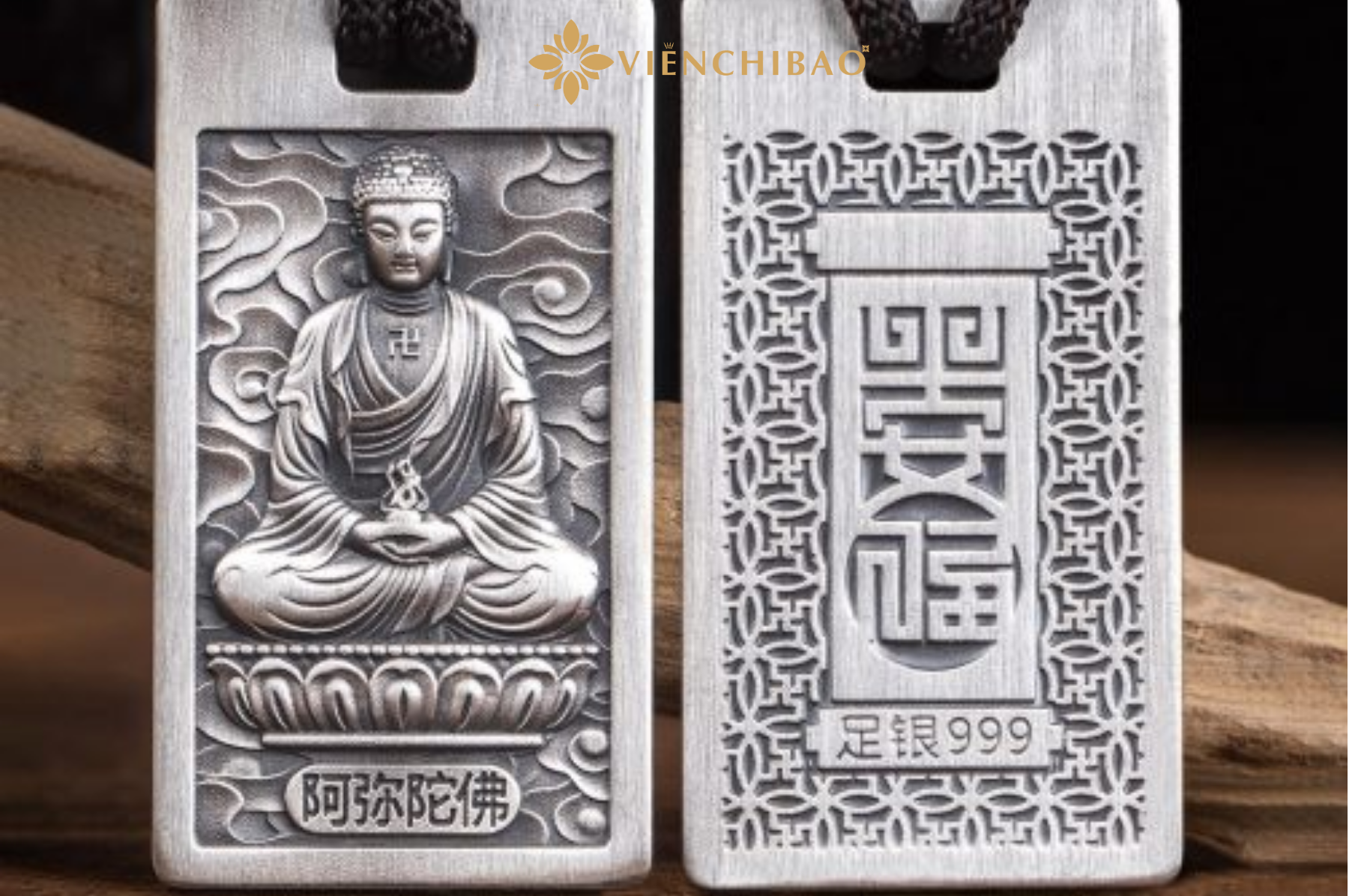 MẶT DÂY CHUYỀN PHẬT BẢN MỆNH THẺ BÀI DIỆU PHÁP LIÊN HOA – A DI ĐÀ – VIỄN CHÍ BẢO M100076