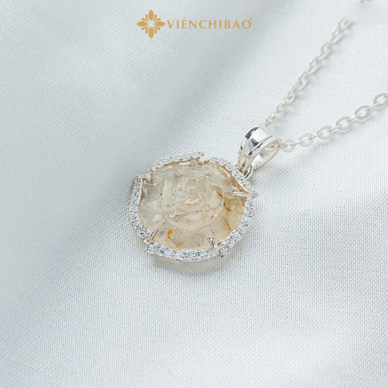 Mặt Dây Chuyền Bạc Nữ Hoa Mẫu Đơn Đá Thạch Anh Tóc Vàng Viễn Chí Bảo