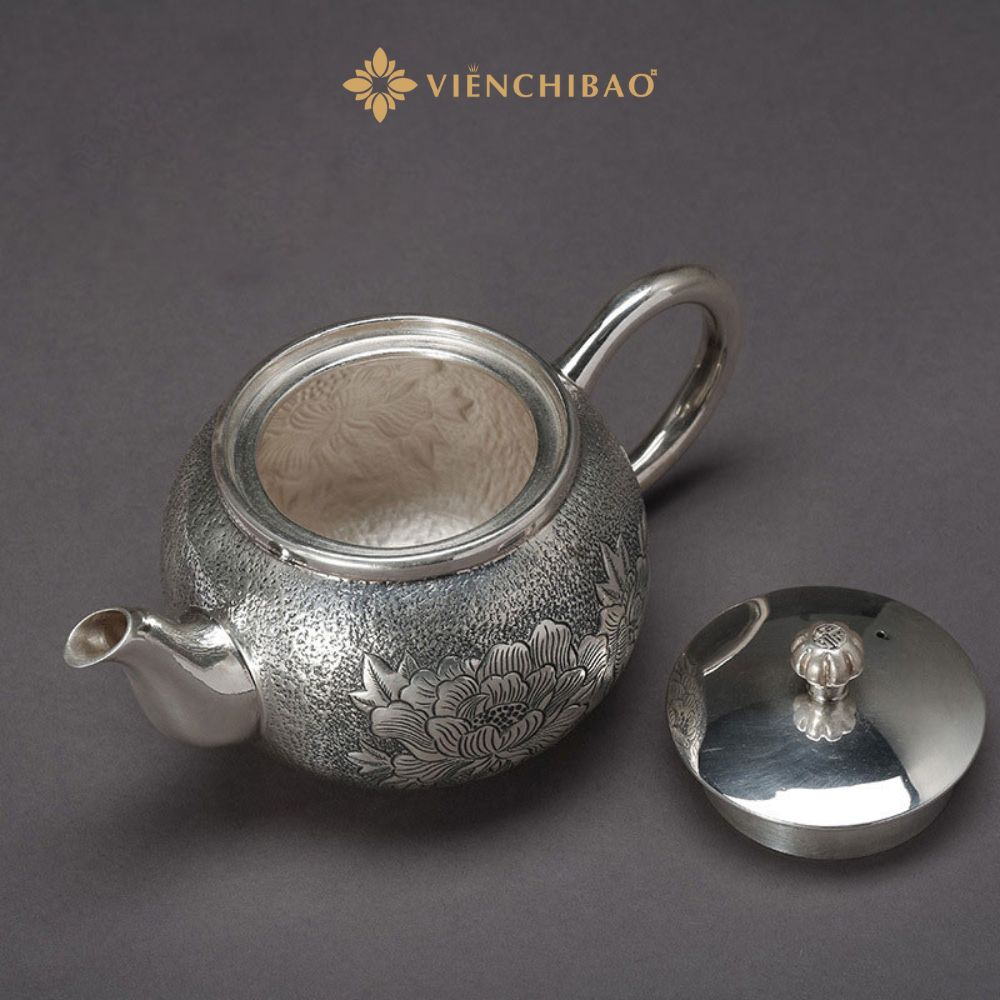 Ấm Trà Hoa Mẫu Đơn Bạc S999 – Viễn Chí Bảo