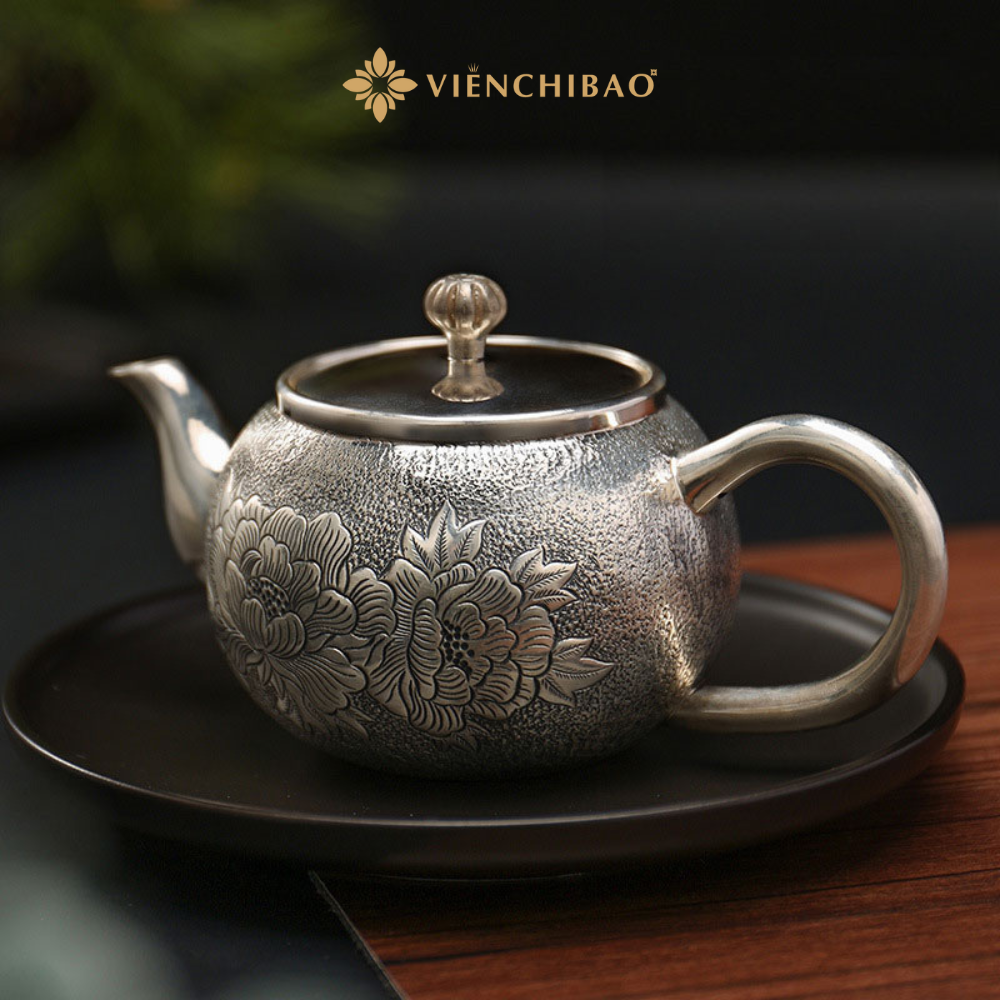 Ấm Trà Hoa Mẫu Đơn Bạc S999 – Viễn Chí Bảo