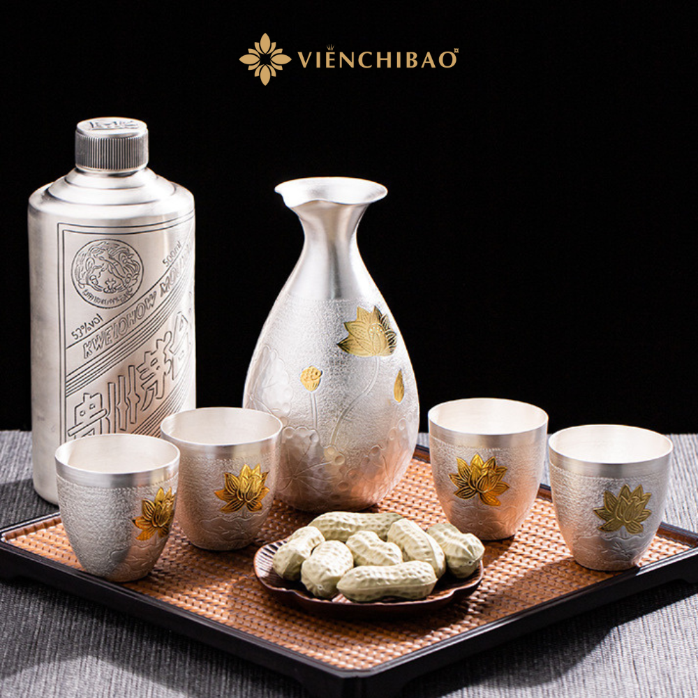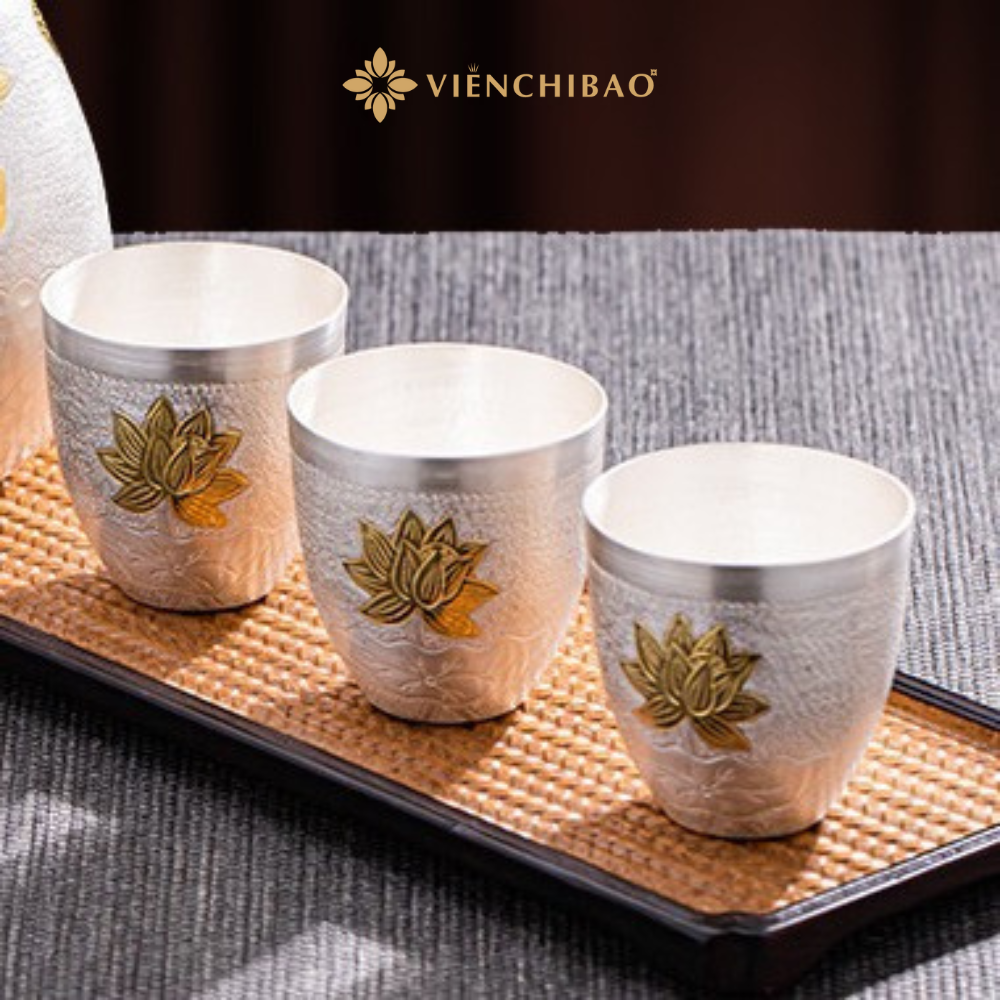 Bộ Bình Đựng – Chén Uống Liên Hoa Bạc S999 – Viễn Chí Bảo