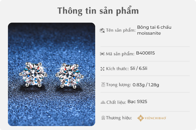 I. THÔNG TIN SẢN PHẨM BÔNG TAI 6 CHẤU ĐÁ MOISSANITE