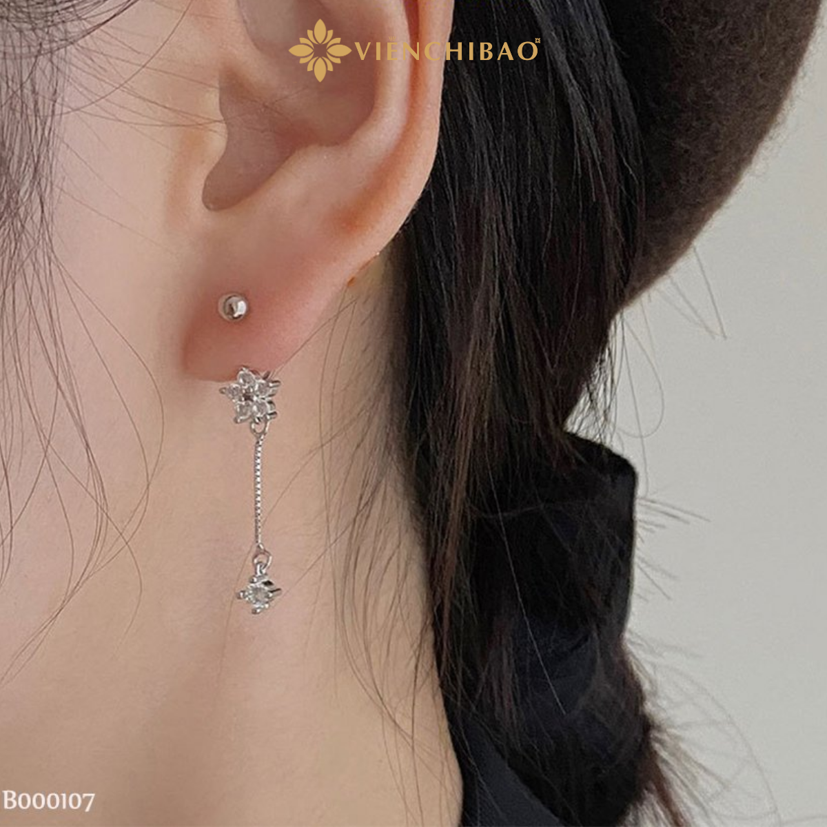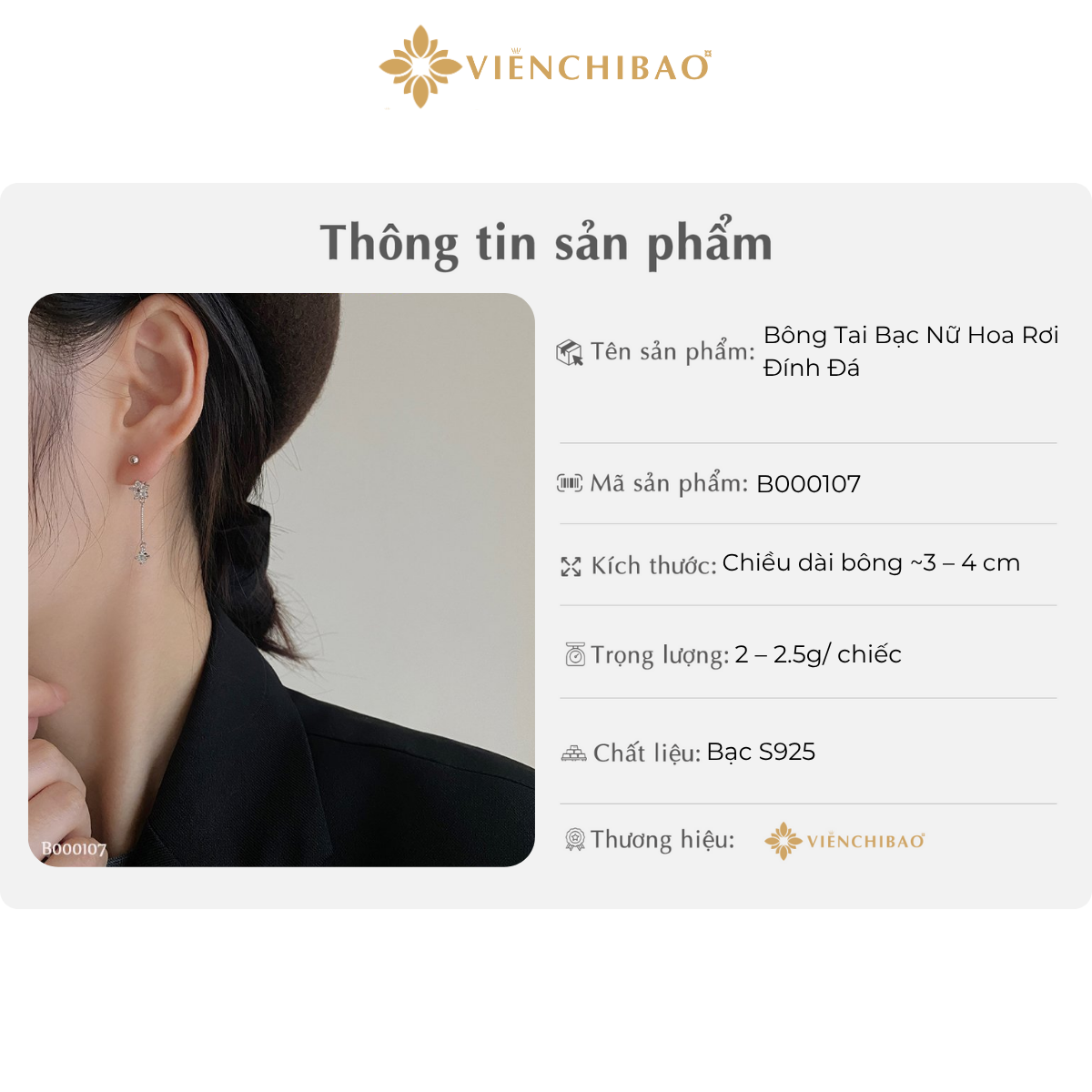 THÔNG TIN SẢN PHẨM BÔNG TAI BẠC NỮ HOA RƠI ĐÍNH ĐÁ