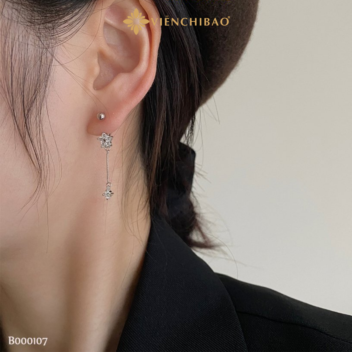 • Bông tai có thiết kế hoa rơi, tạo vẻ đẹp dịu dàng, thanh thoát, nhưng cũng đầy cuốn hút.