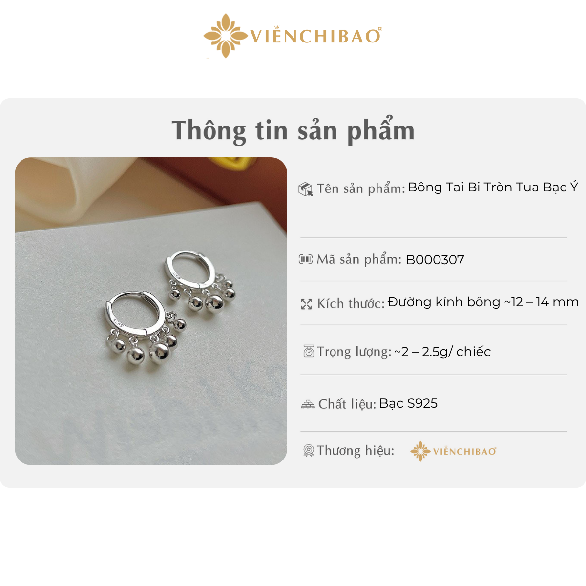 THÔNG TIN SẢN PHẨM BÔNG TAI BI TRÒN TUA BẠC Ý