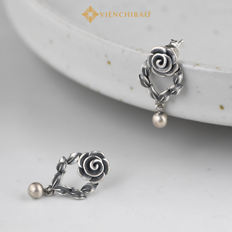 Sự kết hợp giữa họa tiết hoa hồng vintagechất bạc Thái trầm ấm giúp đôi bông tai mang nét đẹp vừa cổ điển, vừa hiện đại, tôn lên phong thái thanh lịch, tinh tế cho người đeo.