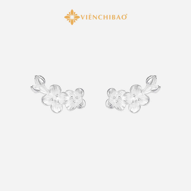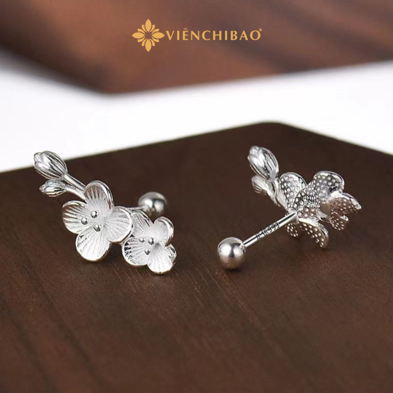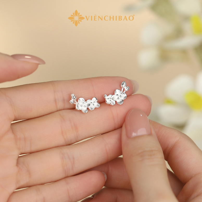 • Kiểu dáng: Bông tai hình hoa mận với cánh hoa được tạo vân nhẹ, đường nét rõ và cân đối giữa hiện đại và nữ tính.