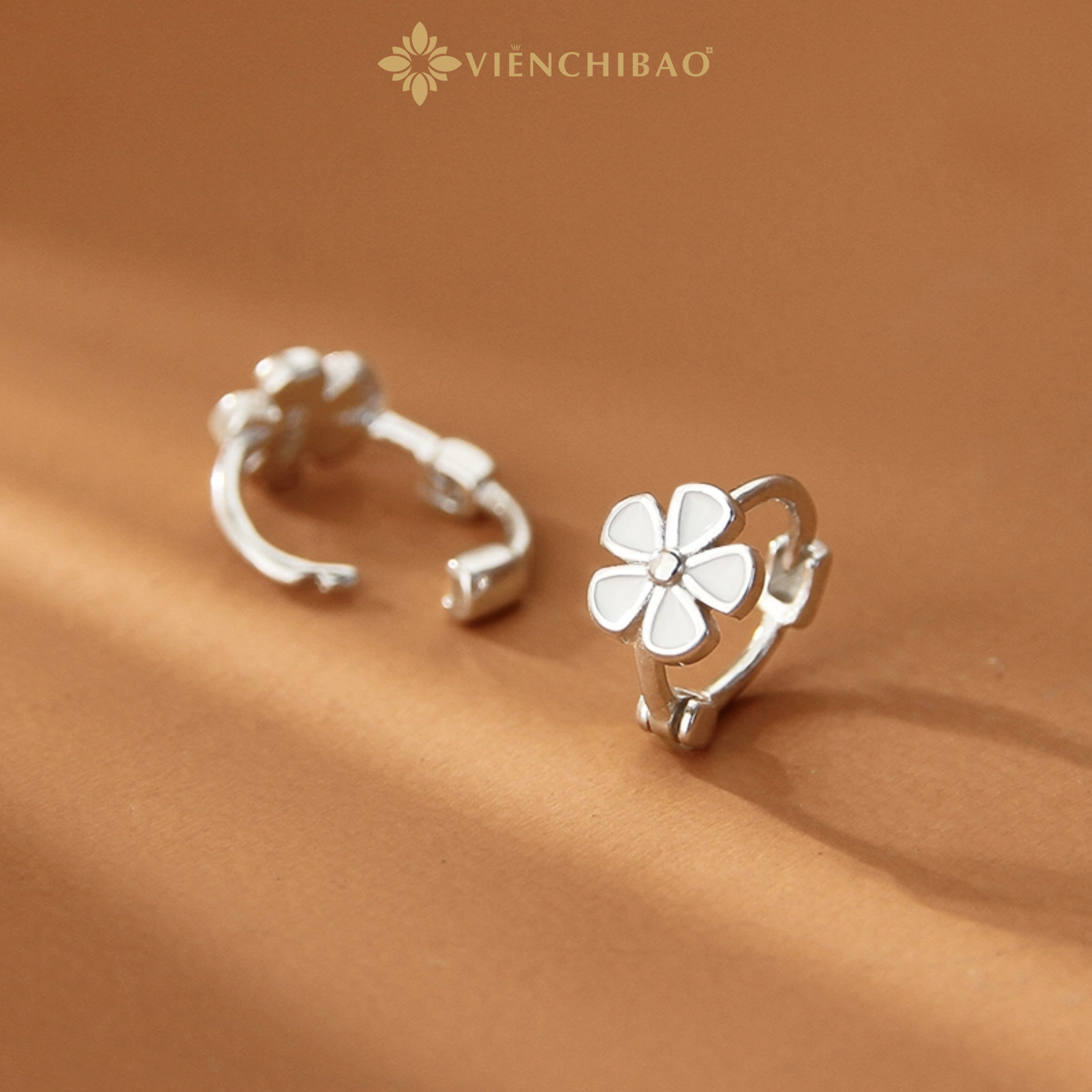 Đôi bông tai được chế tác từ bạc S925 cao cấp, mang sắc trắng sáng nhẹ nhàng và bền theo thời gian. Điểm nhấn là mặt hoa năm cánh tinh xảo, thiết kế cân đối và hài hòa — mỗi cánh hoa được uốn cong nhẹ nhàng để tạo hiệu ứng nổi bật khi ánh sáng chiếu vào. Bề mặt bạc được đánh bóng, giúp ánh bạc phản chiếu tinh tế trên vành tai, mang đến vẻ đẹp dịu dàng mà vẫn sang trọng.