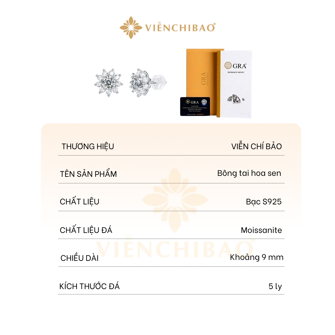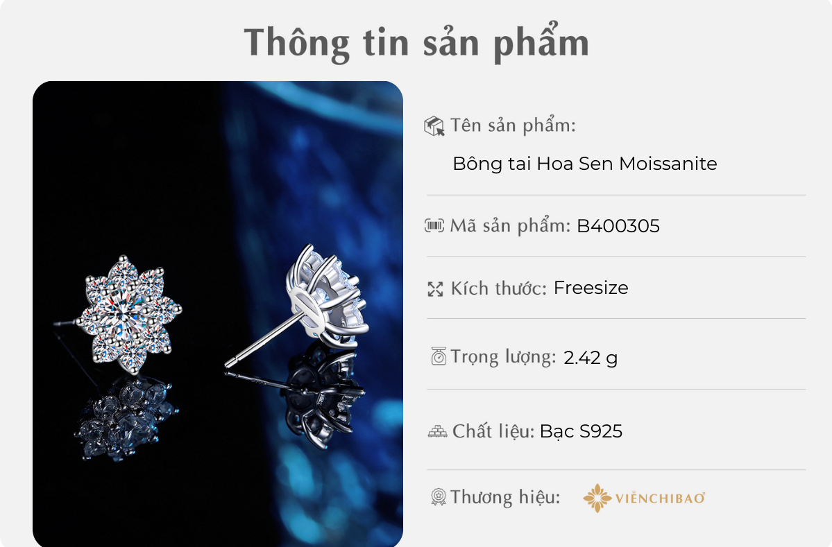 I. Thông Tin Sản Phẩm – Bông tai Hoa Sen Moissanite 5li