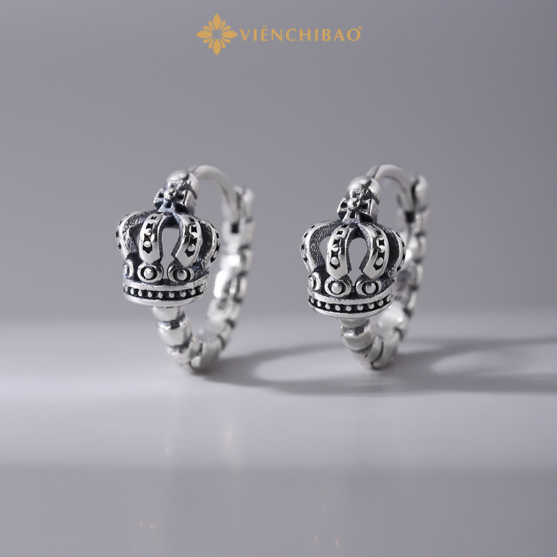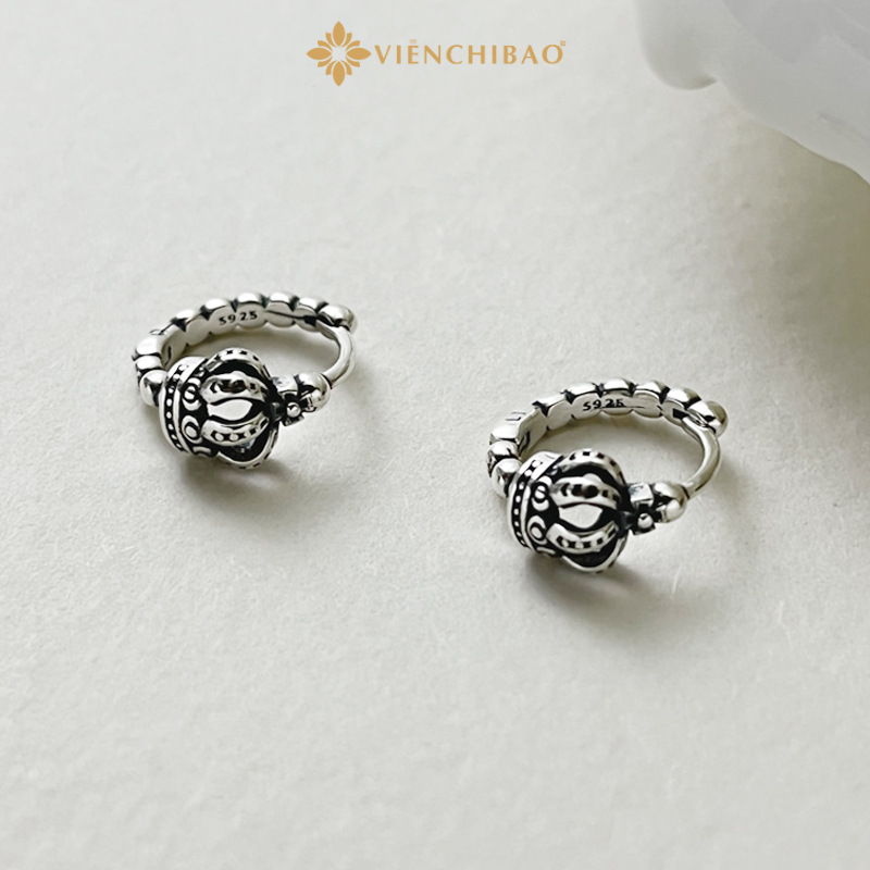 Được chế tác hoàn toàn từ Bạc Thái S925 cao cấp, đôi bông tai gây ấn tượng với thiết kế hình vương miện ba chiều tinh xảo, kết hợp cùng vành tròn được tạo hình như chuỗi hạt bạc nhỏ, vừa cổ điển vừa hiện đại. Đây là phụ kiện hoàn hảo cho những ai yêu thích sự độc đáo, sang trọng nhưng không phô trương.