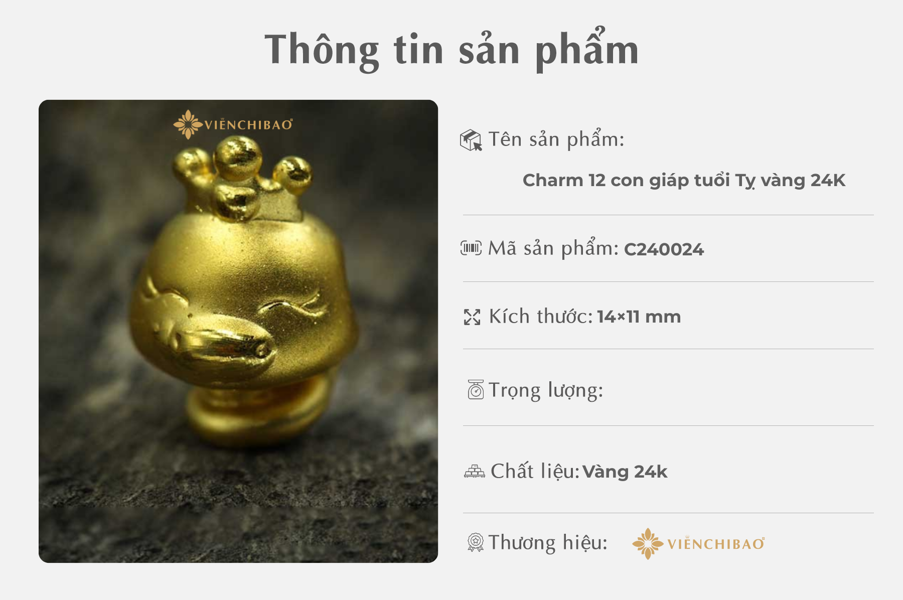 Tên sản phẩm: Charm 12 Con Giáp Tuổi Tỵ – Vàng 24K