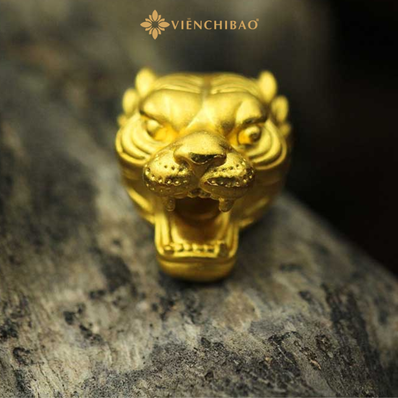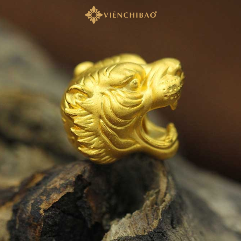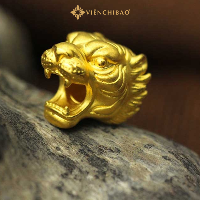 Thiết kế charm mô phỏng đầu Bạch Hổ với các đường nét sắc sảo, mạnh mẽ. Bờm hổ được khắc tinh xảo tạo nên chiều sâu thị giác, miệng há rộng gầm gừ như sẵn sàng trấn áp mọi tà khí. Ánh vàng 24K thuần khiết được xử lý bề mặt mờ nhám sang trọng, tạo hiệu ứng ánh sáng cổ điển và nổi bật nét uy quyền.
