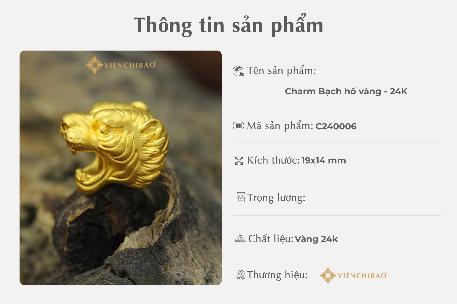 Viễn Chí Bảo xin chân thành cảm ơn quý khách hàng đã luôn tin tưởng và lựa chọn những sản phẩm thủ công chế tác từ tâm – như mẫu Charm Bạch Hổ Vàng – để đồng hành cùng mình trên hành trình phong thủy và khẳng định bản ngã. Mỗi sản phẩm được chúng tôi tuyển chọn nguyên liệu kỹ lưỡng, chạm khắc tỉ mỉ để xứng đáng trở thành một phần trong kho báu tâm linh của quý vị.