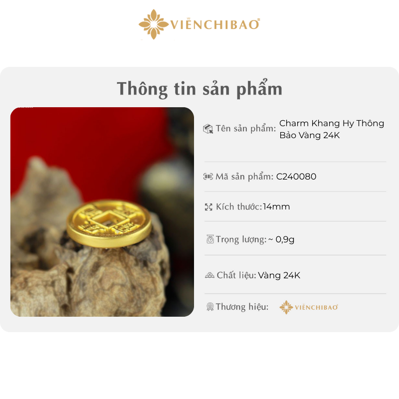 THÔNG TIN SẢN PHẨM CHARM KHANG HY THÔNG BẢO VÀNG 24K