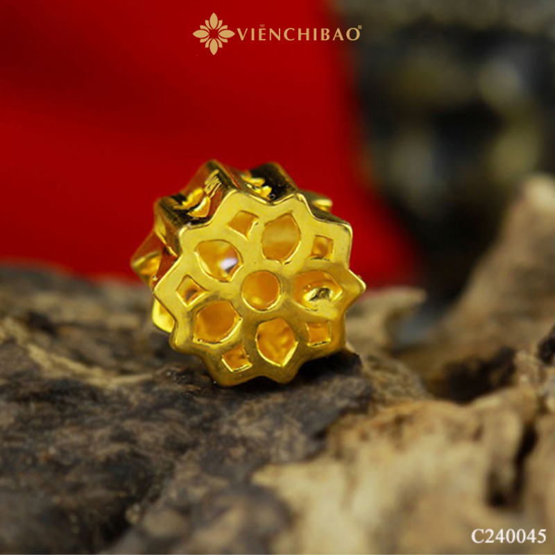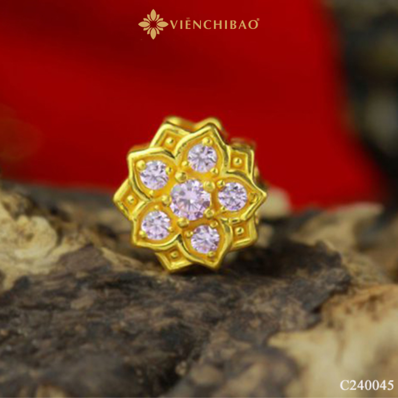 Viễn Chí Bảo trân trọng giới thiệu đến Quý khách hàng Charm Liên Hoa Đính Đá Vàng 24K, một tuyệt tác hội tụ tinh hoa chế tác và năng lượng phong thủy. Chúng tôi tin rằng sản phẩm này sẽ mang đến cho Quý khách không chỉ vẻ đẹp sang trọng, mà còn sự an lành và may mắn trong cuộc sống.