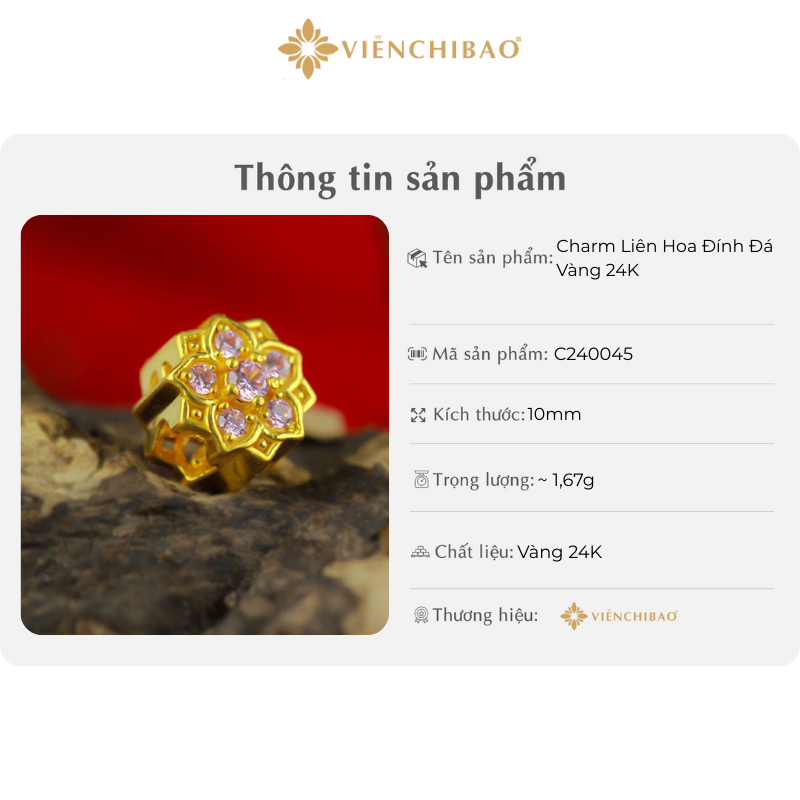 THÔNG TIN SẢN PHẨM CHARM LIÊN HOA ĐÍNH ĐÁ VÀNG 24K