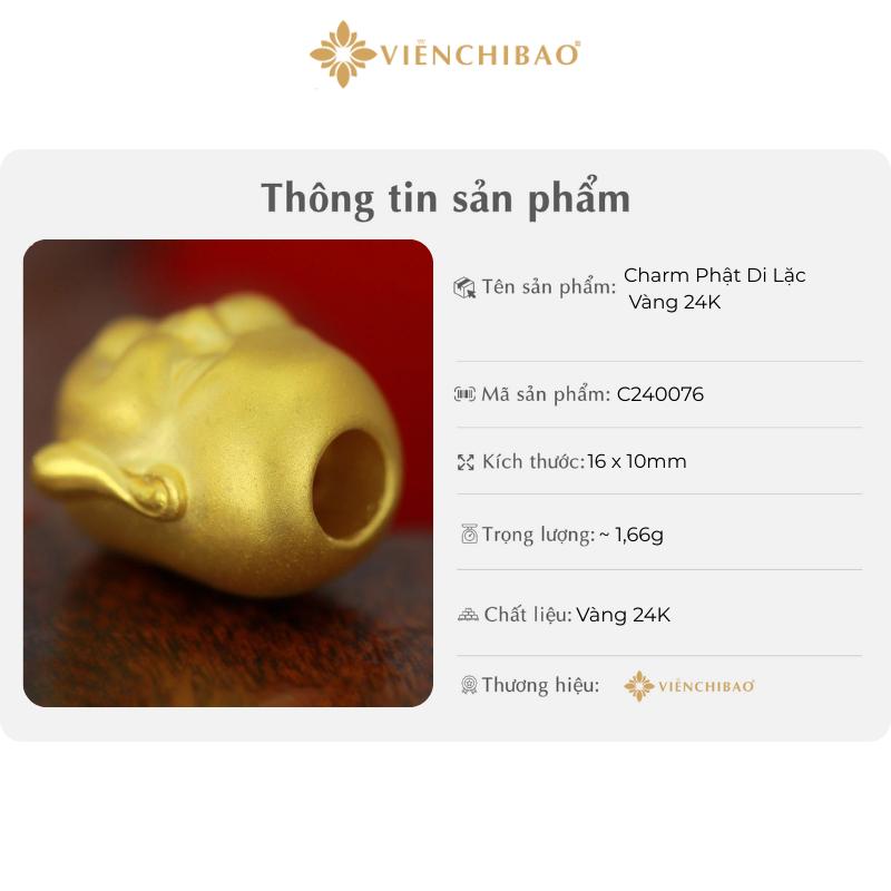 THÔNG TIN SẢN PHẨM CHARM PHẬT DI LẶC VÀNG 24K