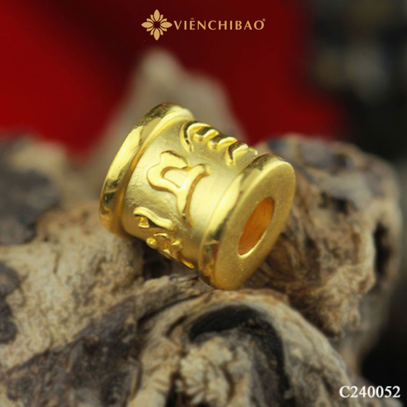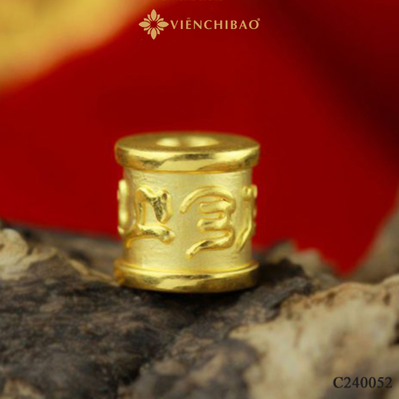 Charm Trụ Khắc Om Mani Padme Hum Vàng 24K - VIỄN CHÍ BẢO