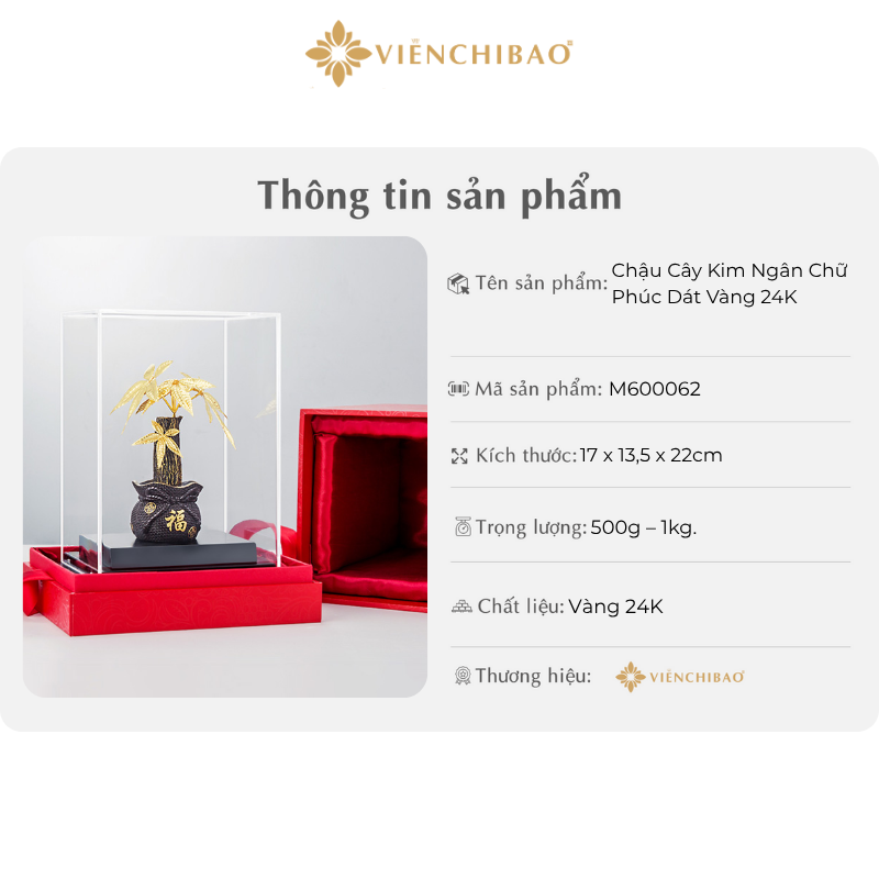THÔNG TIN SẢN PHẨM CHẬU CÂY KIM NGÂN CHỮ PHÚC VÀNG 24K