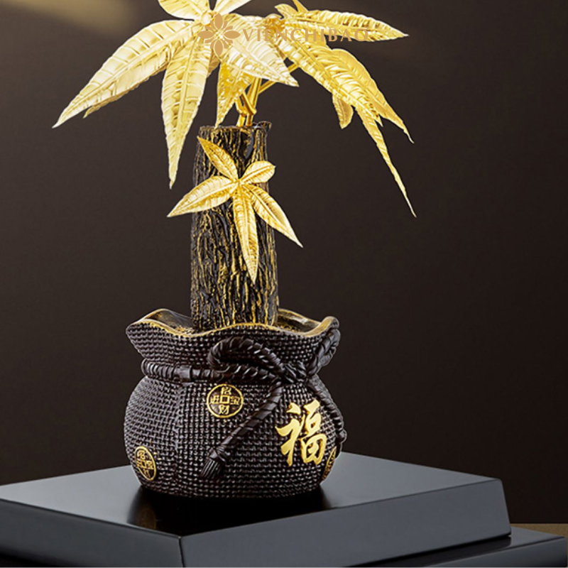 Trong phong thủy, cây kim ngân từ lâu đã được coi là biểu tượng của tài lộc, thịnh vượng và may mắn. Khi kết hợp cùng chất liệu vàng 24K dát thủ công tinh xảo, sản phẩm không chỉ mang ý nghĩa phong thủy mạnh mẽ mà còn trở thành món quà tặng cao cấp, sang trọng.