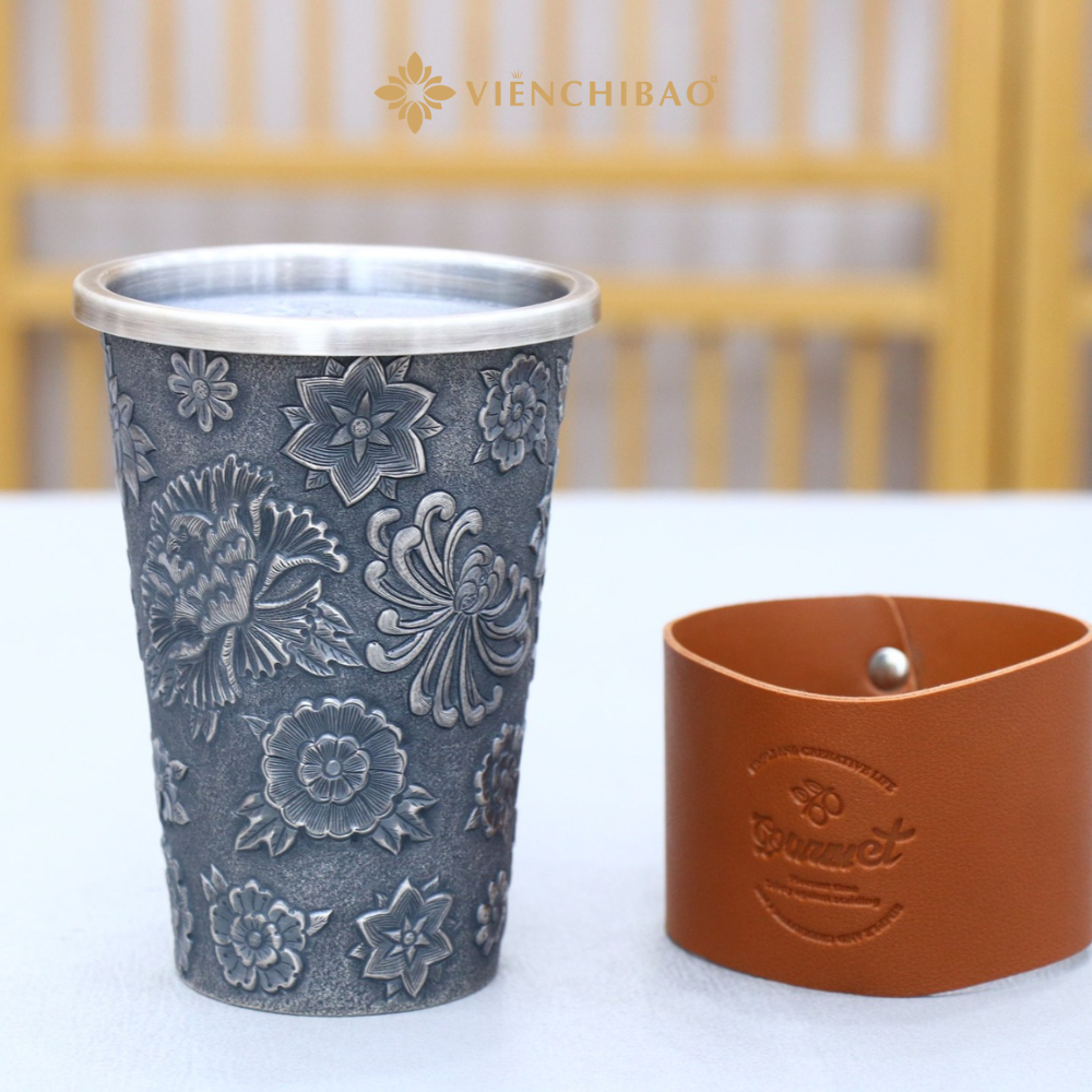 Họa tiết Hoa Cúc được thực hiện bằng kỹ thuật chạm khắc nổi (relief carving) tinh xảo trên toàn bộ thân cốc. Kỹ thuật này tạo ra độ sâu 3D sống động, làm nổi bật từng cánh hoa, mang lại cảm giác nghệ thuật cổ điển và đảm bảo họa tiết không bị phai mờ theo thời gian.