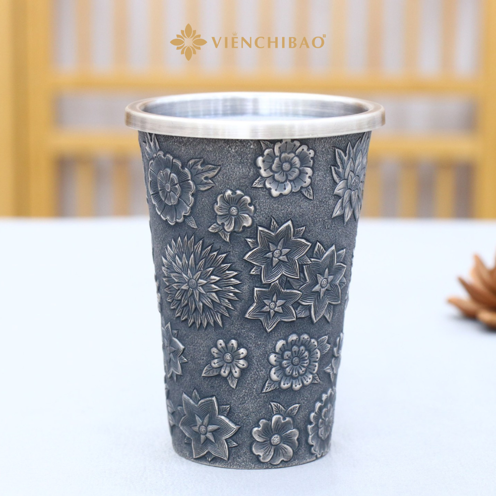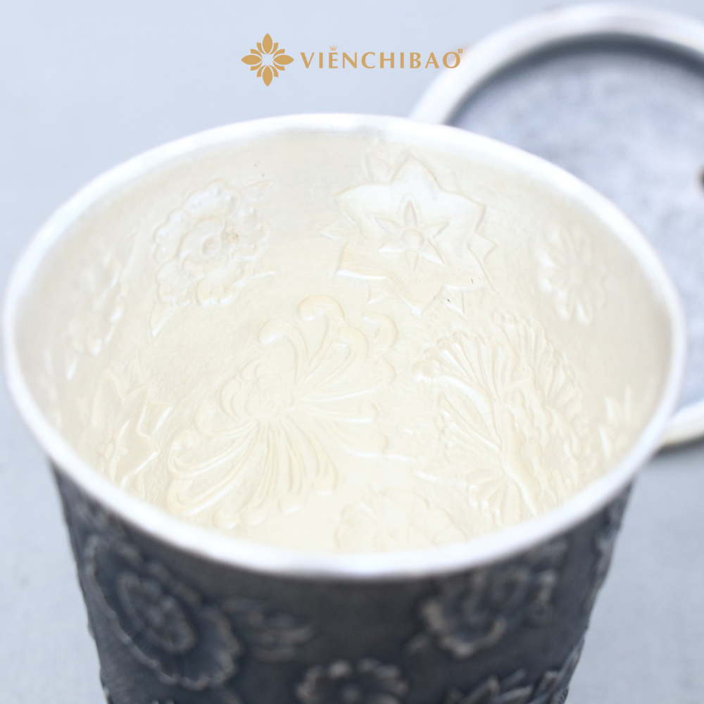 Cốc được chế tác từ bạc S999 nguyên chất, cam kết độ tinh khiết gần như tuyệt đối, mang đến bề mặt kim loại sáng mờ, sang trọng, tối ưu hóa khả năng giữ nhiệt hiệu quả.