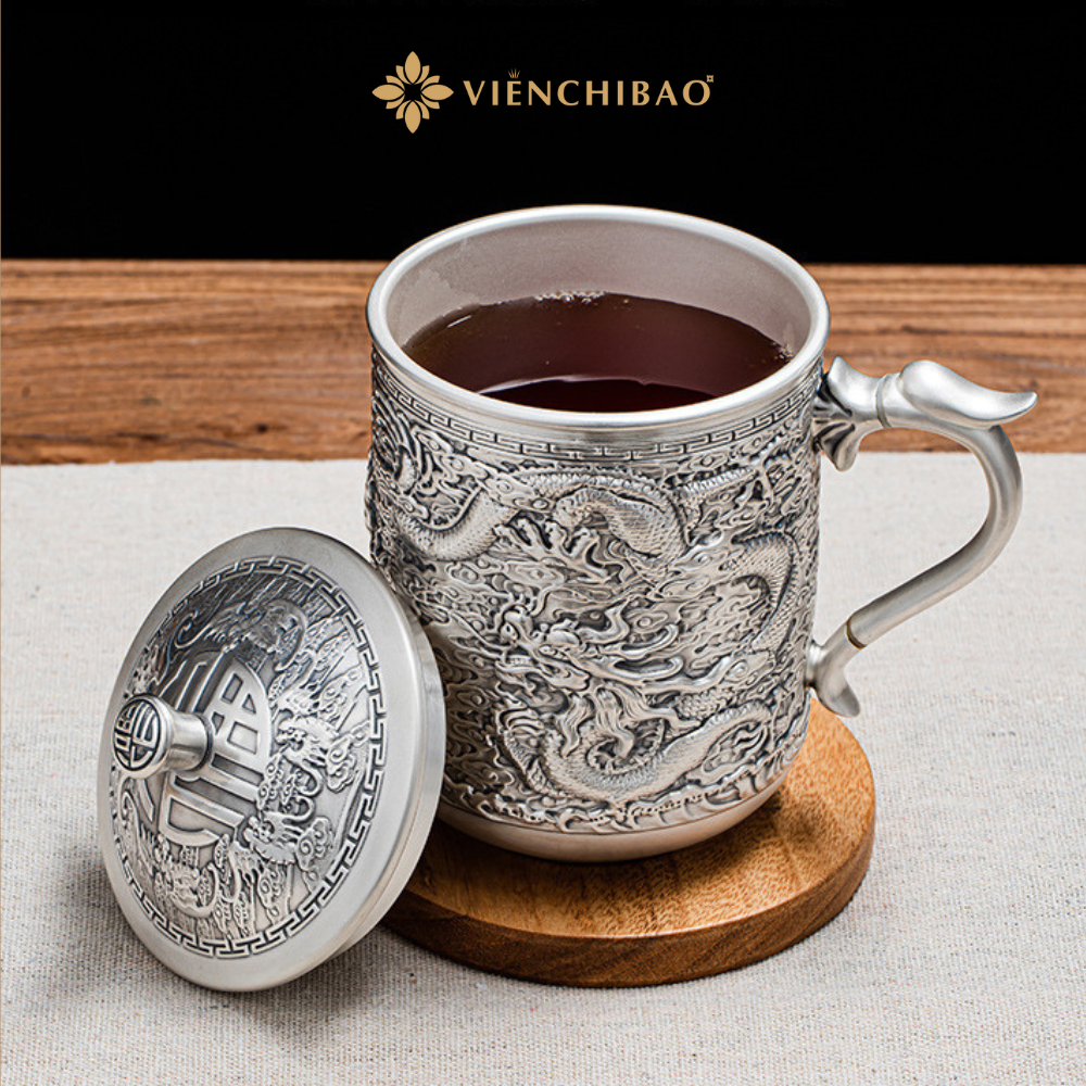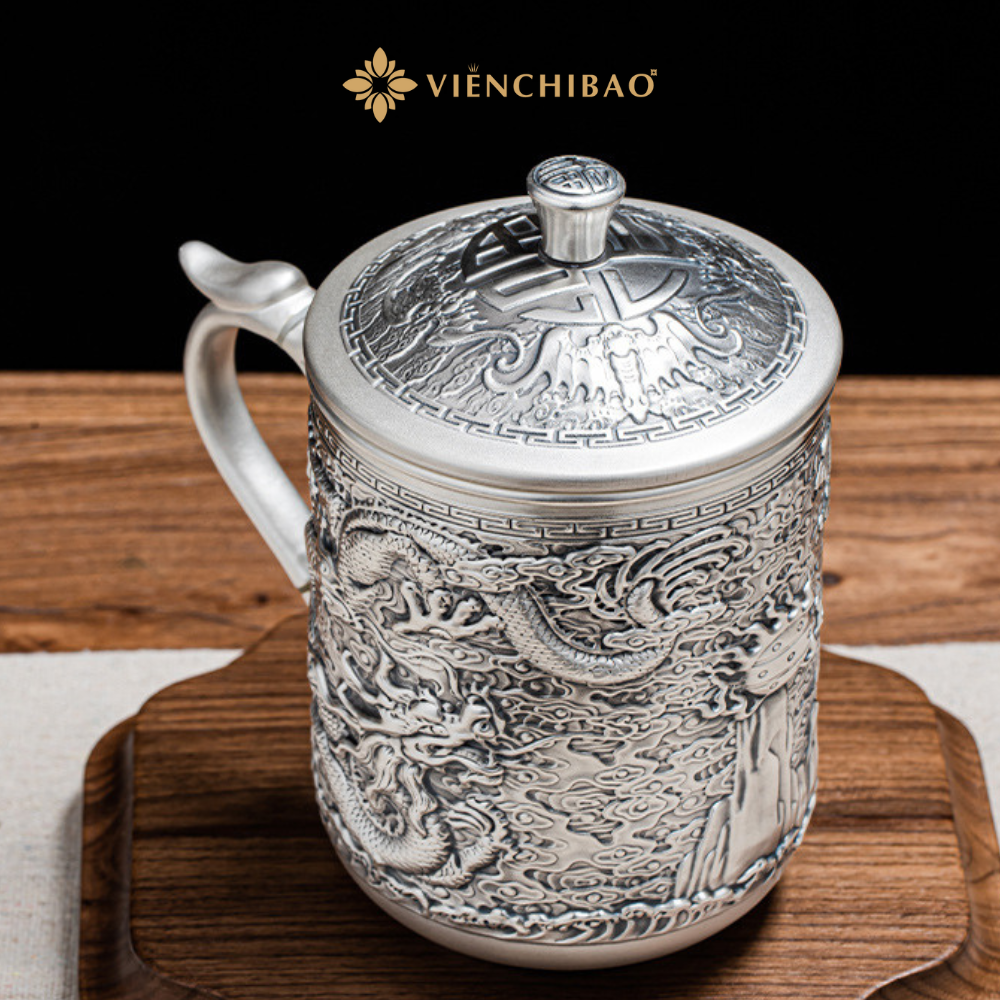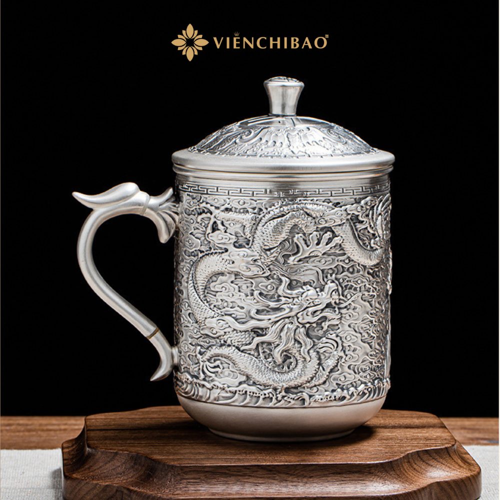 Cốc Nước Bạc S999 Họa Tiết Rồng Phù Điêu Quý Tộc