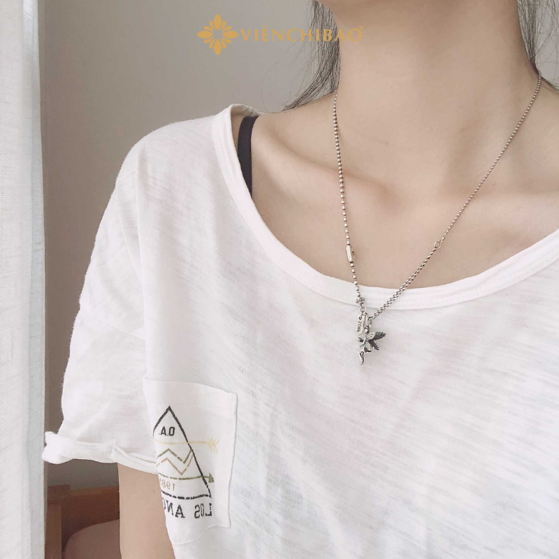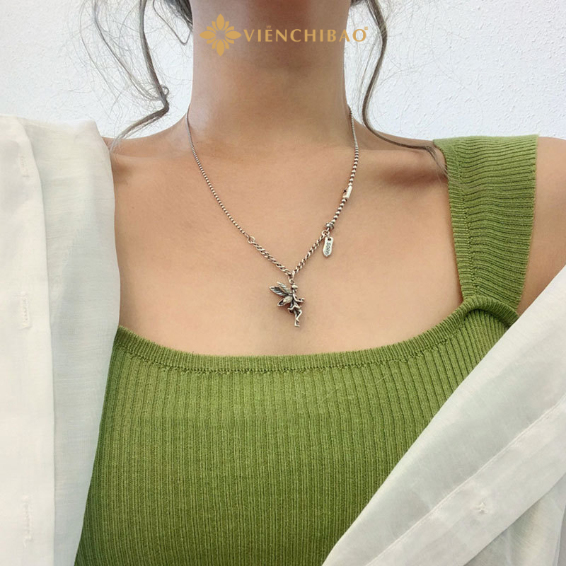 Bạn có thể kết hợp dây chuyền bạc nữ Angel với váy trắng đơn giản, áo hai dây, sơ mi vải linen hoặc đầm vintage nhẹ nhàng để làm nổi bật toàn bộ thiết kế. Phần mặt dây rủ xuống tạo điểm nhấn ở xương quai xanh – nơi được ví như điểm thu hút đầy nữ tính trên cơ thể phái đẹp.