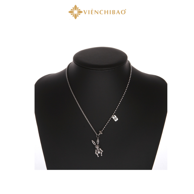 Thiết kế: Dây chuỗi bi hiện đại, mặt dây hình chú thỏ cách điệu kết hợp charm tag khắc nổi logo độc quyền