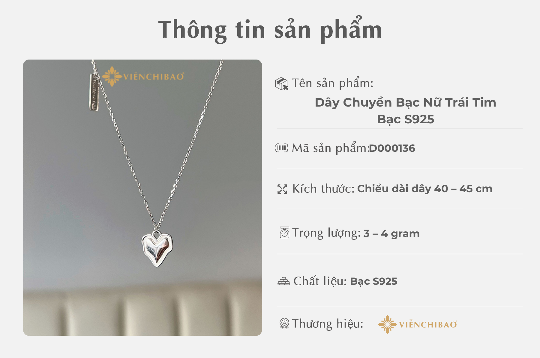 II. Thông Tin Sản Phẩm Dây Chuyền Bạc Nữ Trái Tim