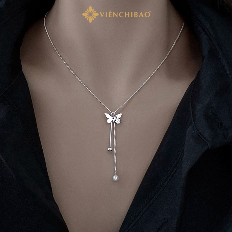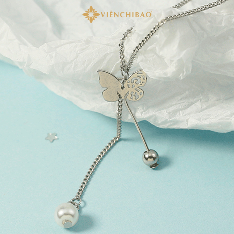 Chiếc dây chuyền choker bạc nữ cánh bướm này không chỉ đơn thuần là trang sức, mà còn là sự kết hợp tinh tế giữa nghệ thuật chế tác và ý nghĩa biểu trưng. Cánh bướm được chế tác tỉ mỉ, điểm nhấn là hai dải dây rũ tinh tế đính ngọc trai và hạt tròn, tạo nên chuyển động mềm mại trên cổ người đeo – như một vũ điệu của sự tự do và cuốn hút.