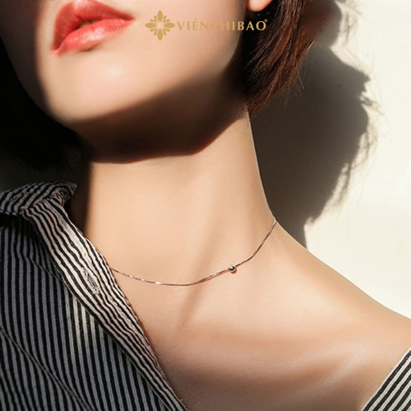 Dây Chuyền Choker Bạc Nữ Trơn Bi Tròn - Bạc S925 Viễn Chí Bảo