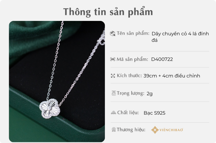 I. Thông tin sản phẩm Dây chuyền cỏ 4 lá đính đá