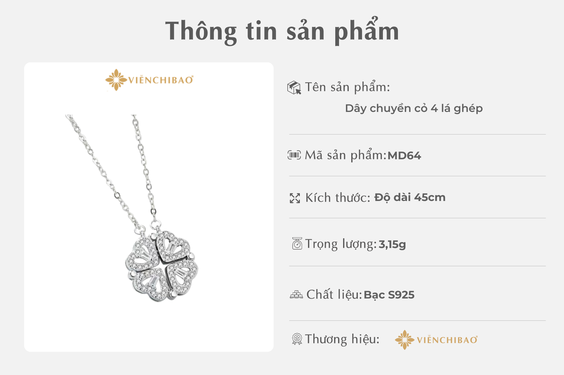 I. THÔNG TIN SẢN PHẨM DÂY CHUYỀN CỎ 4 LÁ GHÉP ĐEO HAI DÁNG