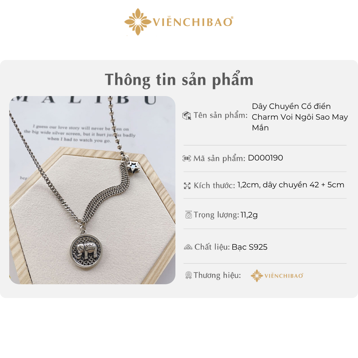Dây chuyền cổ điển charm voi ngôi sao may mắn – Bạc Thái S925 là một thiết kế độc đáo kết hợp giữa nét hoài cổ và tinh thần hiện đại. Sản phẩm mang đến hình ảnh mạnh mẽ nhưng vẫn đầy tính biểu tượng, là lựa chọn hoàn hảo cho những ai yêu thích phong cách vintage và tin vào sức mạnh của biểu tượng phong thủy.