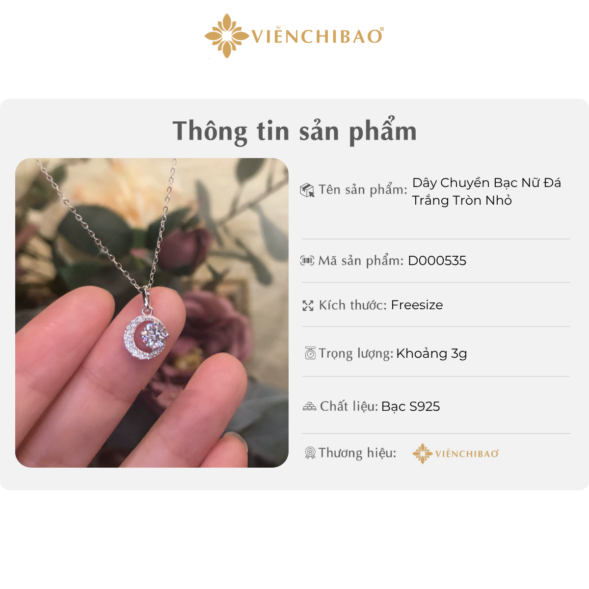 Mua Dây chuyền bạc nữ đá trắng tròn nhỏ tại Viễn Chí Bảo, bạn sẽ được: