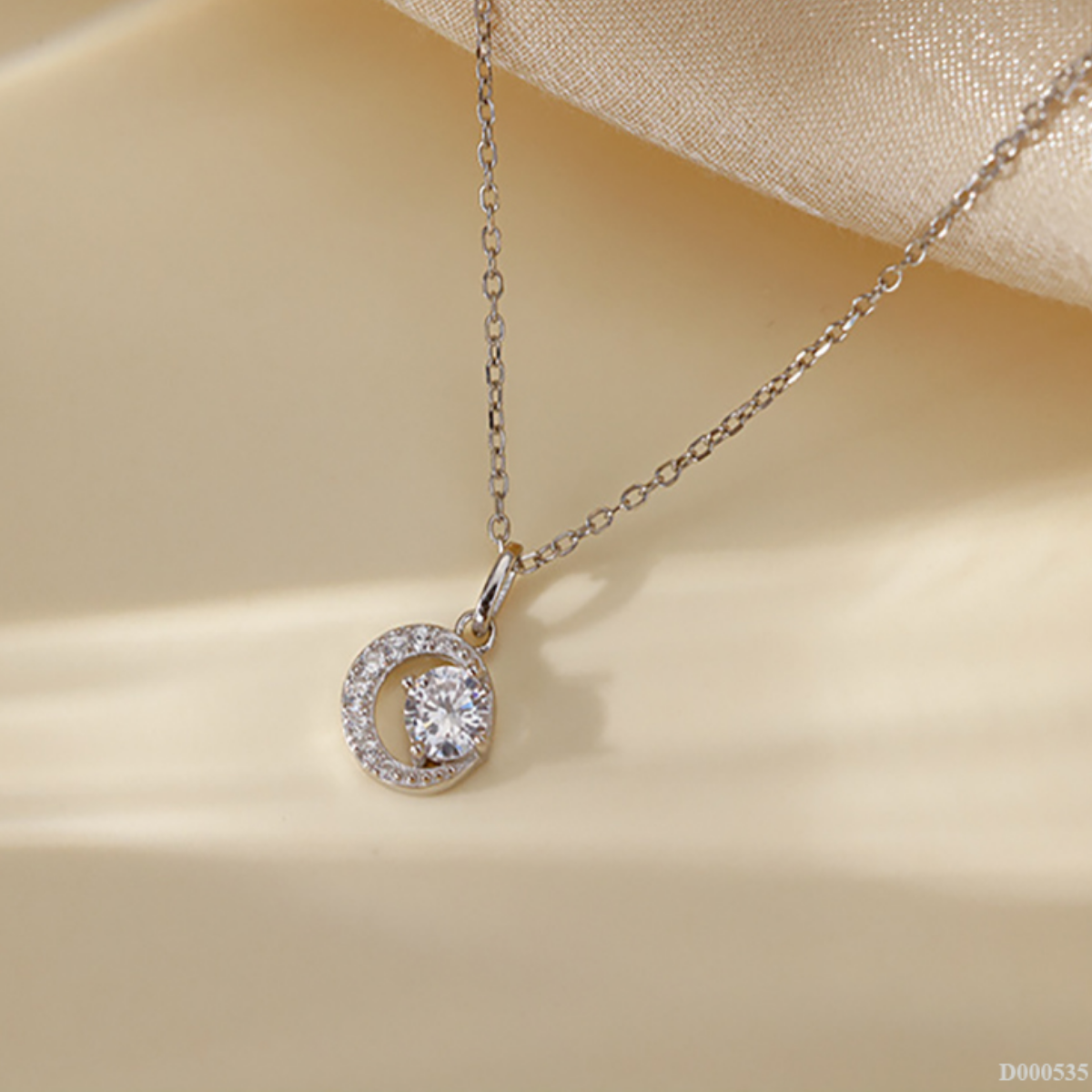Dây chuyền được chế tác từ bạc S925 cao cấp, loại bạc nổi tiếng với độ sáng bóng vượt trội và khả năng chống oxy hóa tốt. Mặt dây chuyền là viên đá trắng tròn nhỏ, tượng trưng cho sự thuần khiết và tỏa sáng. Mỗi đường viền được cắt gọt tỉ mỉ, phản chiếu ánh sáng tự nhiên tạo hiệu ứng lấp lánh tinh tế khi đeo.