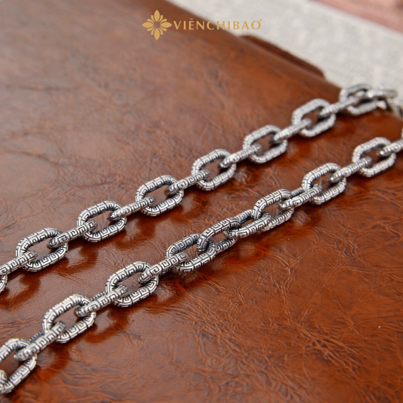 Mỗi mắt dây được làm từ bạc Thái S925, nổi tiếng với độ bền, độ cứng cao và màu sắc cổ điển mạnh mẽ. Chất liệu bạc Thái cho phép các hoa văn được khắc sâu, sắc nét và không bị mờ theo thời gian.